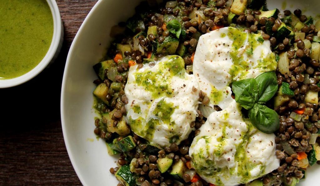 - Servimos con la mozzarella partida en cuartos y colocada encima de las lentejas pardinas. El calor de estas hará que el queso se derrita un poco.